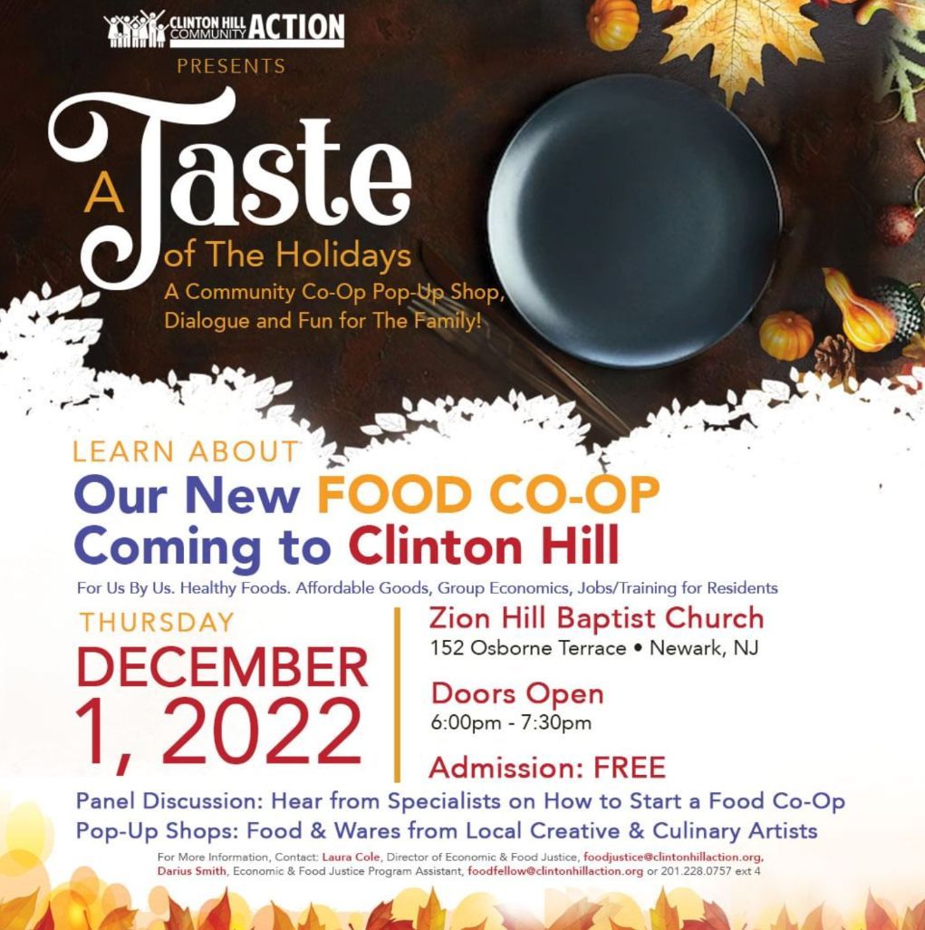 Learn more about the Food Co-op coming to Clinton Hill TODAY, December 1st at Zion Hill Baptist Church 152 Osborne Terrace, Newark NJ 07112 from 6 pm - 7:30 pm. Learn more and register at the link below.