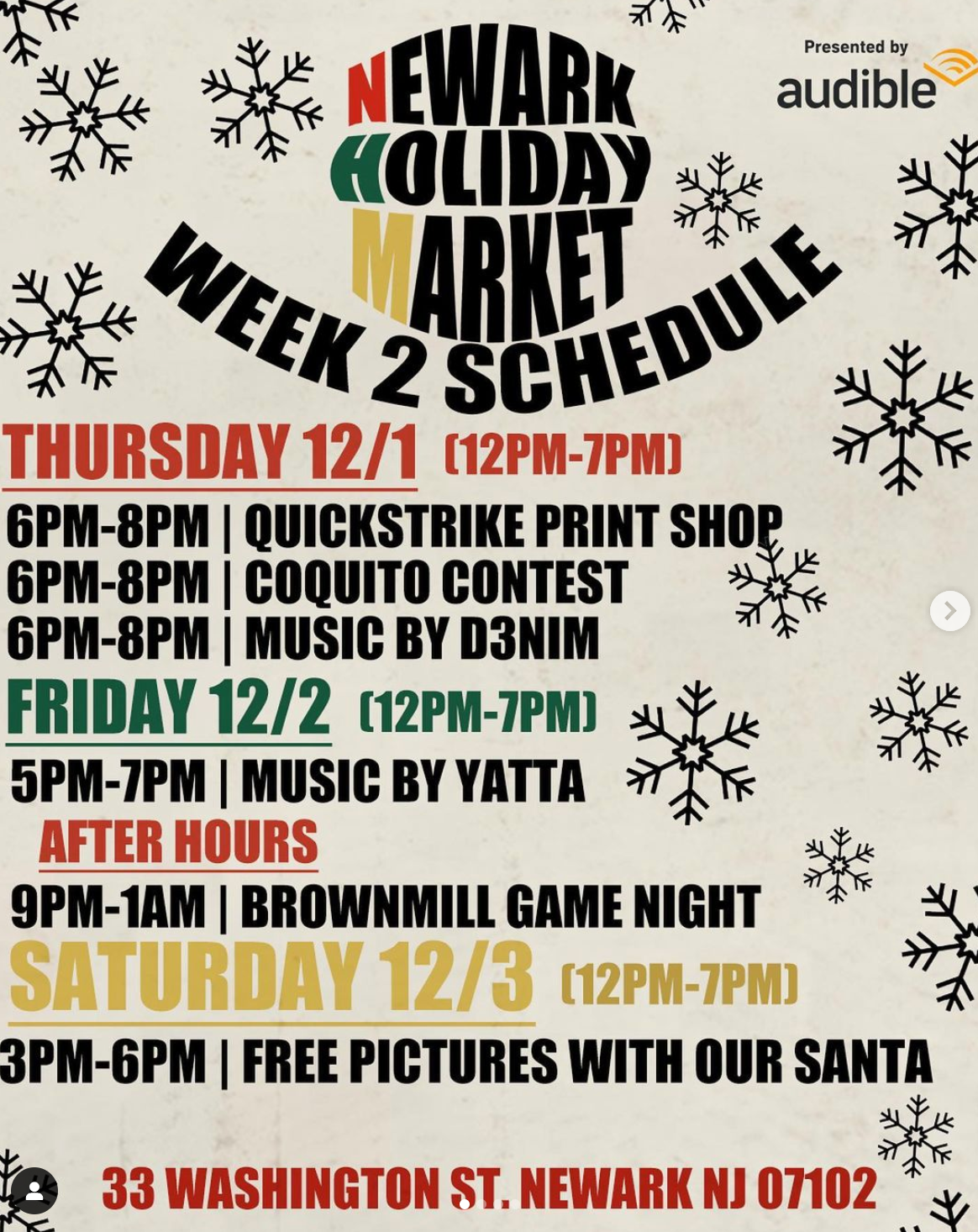 Weekend schedule for holiday market via Instagram